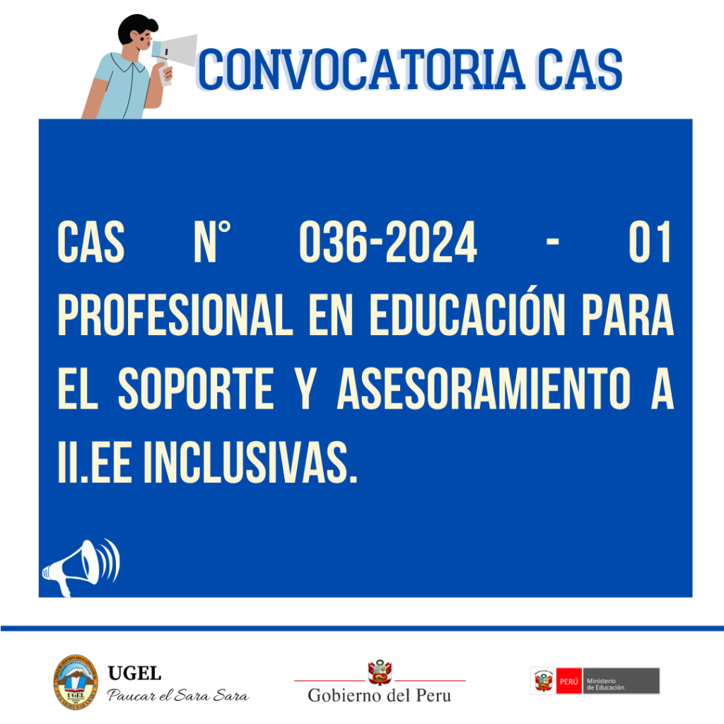 La entidad informa a la ciudadanía que se ha iniciado el proceso de convocatoria para la contratación de personal en las siguientes plazas: Psicólogo(a), Personal de Mantenimiento, Coordinador(a) de Innovación y Personal de Vigilancia. Los postulantes interesados deberán presentar sus expedientes de manera física a través de Mesa de Partes, conforme al cronograma establecido. El […]