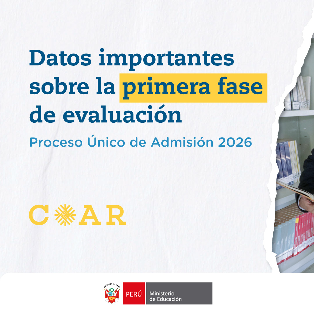 La Unidad de Gestión Educativa Local Paucar del Sara Sara informa a la comunidad educativa que se encuentran disponibles los datos importantes sobre la primera fase de evaluación del Proceso Único de Admisión al Colegio de Alto Rendimiento (COAR) 2026.